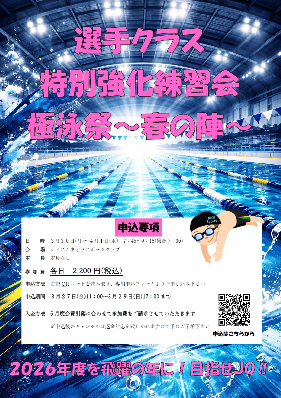選手クラス特別強化練習会 極泳祭~春の陣~